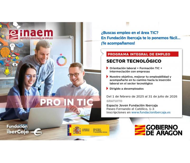 Ahora tienes la oportunidad de participar en este programa PRO-IN TIC de Fundación Ibercaja que está financiado por el Ministerio de Trabajo y Economía Social y convocado por el Instituto Aragonés de Empleo.