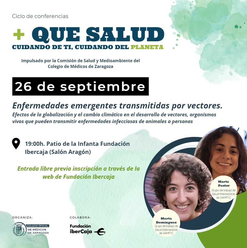 Vuelve el ciclo ‘+Que Salud’, impulsado por la Comisión de Salud y Medio Ambiente del Colegio de Médicos de Zaragoza. En esta ocasión, la conferencia abordará las enfermedades emergentes transmitidas por vectores y el papel de la globalización y el cambio climático en el desarrollo de vectores, organismos vivos que pueden transmitir enfermedades infecciosas de animales a personas.