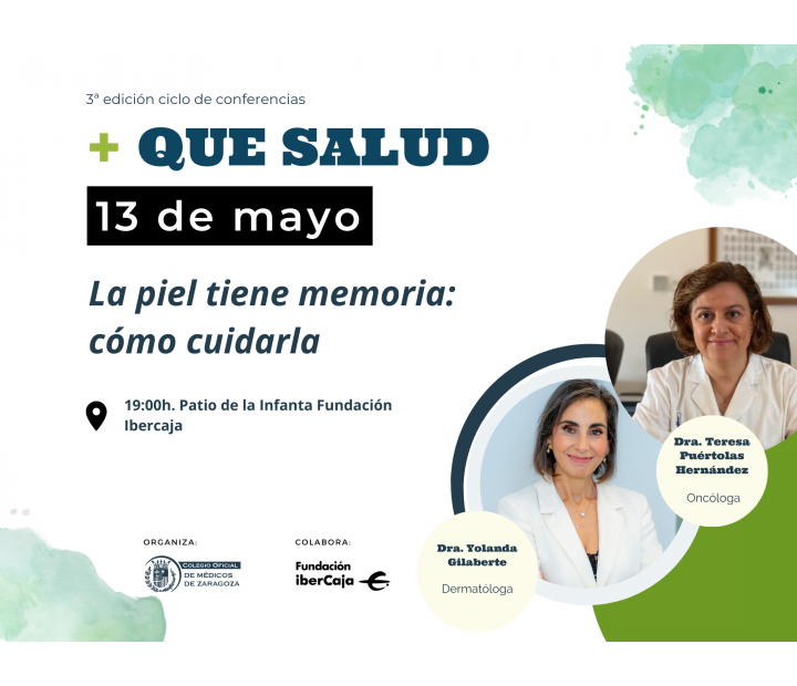 Fundación Ibercaja acogerá en el Patio de la Infanta la 3ª edición del ciclo de conferencias +Que Salud, impulsado por la Comisión de Salud y Medio Ambiente del Colegio de Médicos de Zaragoza.