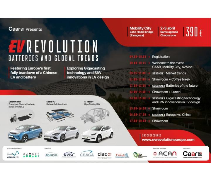 En el Congreso EV REVOLUTION: Batteries and Global Trends, el cual está abierto a todos los profesionales del sector a nivel nacional, se abordan los aspectos clave del auge y evolución de los vehículos eléctricos y electrificados. Este evento contará con presentaciones a cargo de A2MAC1 y una sala de exposición de piezas de vehículos completos, que ofrecerá información sobre las últimas tendencias en tecnología de baterías, innovación en sistemas de propulsión y evaluación comparativa de la competencia.