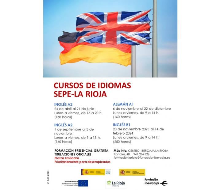 Curso Inglés B1. Se trata de un curso gratuito, gracias a la financiación del Gobierno de La Rioja, el Ministerio de Trabajo y Economía Social, el Ministerio de Educación y Formación Profesional y el Fondo Social Europeo.