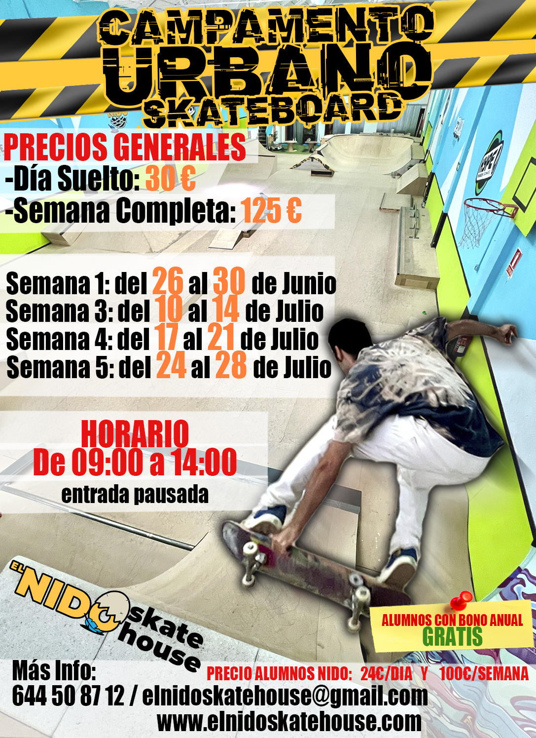 - Las colonias de verano: SKATE CAMP URBANO - NIDO SKATE HOUSE (elnidoskatehouse.com)