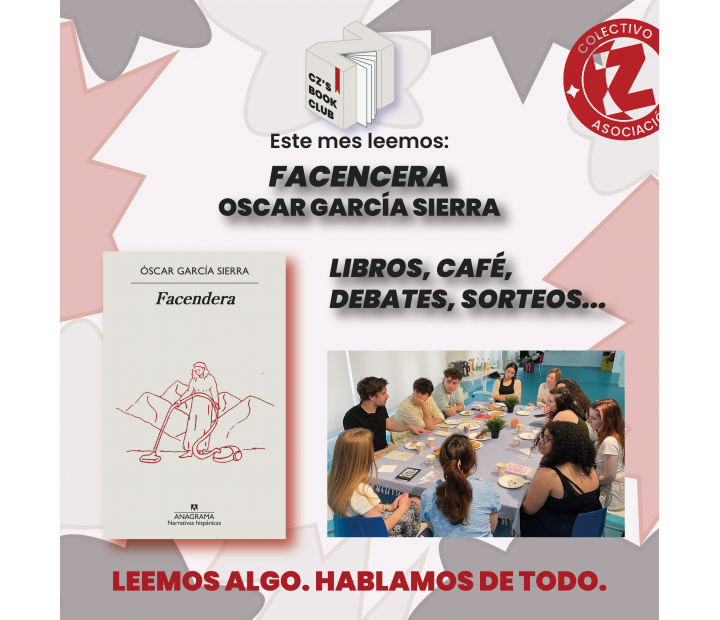 Esto es CZ’s Book Club, un nuevo tipo de club de lectura presentado por Colectivo Z y Espacio Joven Ibercaja, un espacio de tertulia y discusión para jóvenes en el que leemos, disfrutamos de nuestra compañía y de conversaciones necesarias sobre temas actuales. Además, habrá algo de merienda para que pasar toda la tarde hablando no nos seque demasiado la garganta.