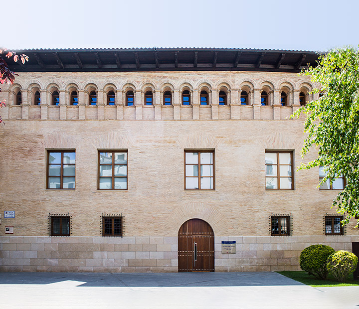 Fundación Ibercaja Huesca se sitúa en el antiguo Palacio de Villahermosa, obra del siglo XVII, declarado Bien Inventariado del Patrimonio Cultural Aragonés. Destaca en su interior un espléndido alfarje mudéjar del siglo XIII que presenta una riquísima cromática y decoración con los característicos motivos geométricos del mudéjar y representaciones humanas, vegetales, heráldicas, animales y bestiario.