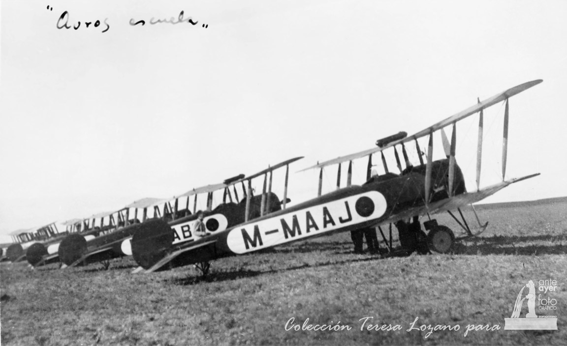 Fotografía inédita de la escuela de aviación de Zaragoza en Valdespartera. Aviones Avro fueron utilizados en ella. Colección Teresa Lozano, 1919.
