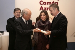 "VIII PREMIO DE PINTURA DELEGACIÓN DEL GOBIERNO EN ARAGÓN" De izquierda a derecha, José Luis Aguirre, Ana Maorad y Javier Fernández, en el momento de la entrega del premio