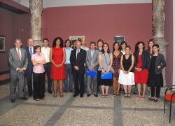 · Los autores de los trabajos seleccionados han recibido las becas de manos del director general, José Luis Aguirre
