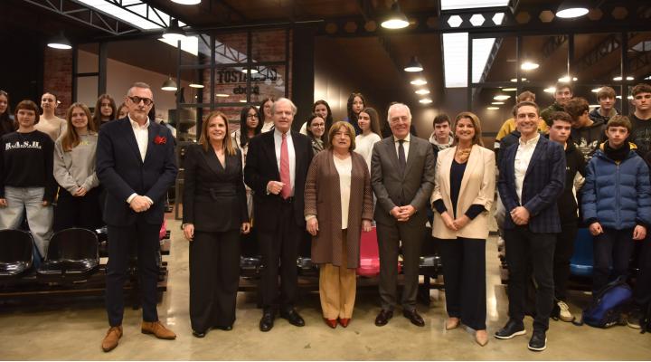 HUESCA.- Un grupo de más de 40 estudiantes del IES Baltasar Gracián de Graus han podido descubrir esta mañana todas las profesiones que hacen posible la actividad de una gran empresa clave para el territorio como es Eboca, en el marco del programa “Xcelence Aragón-Empresas que inspiran”, promovido por el Gobierno de Aragón, Fundación Ibercaja y la Fundación Bertelsmann. La visita ha contado con la presencia de la consejera de Educación, Cultura y Deporte del Gobierno de Aragón, Tomasa Hernández; el director general de Fundación Ibercaja, José Luis Rodrigo; el vicepresidente de Fundación Bertelsmann Francisco Belil, y el presidente de Eboca, Raúl Benito.