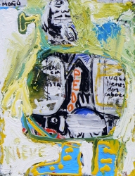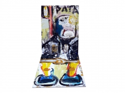 "EL ABRAZO DE LA VACA", EXPOSICIÓN DE JOSÉ MOÑÚ EN IBERCAJA TORRE NUEVA Mini tumba I, se venden piernas (ocasión),2008. Acrílico sobre lienzo. 260 x 97 cm