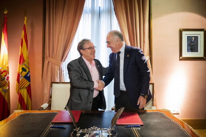 CONVENIO DE FUNDACIÓN IBERCAJA Y EL JUSTICIA DE ARAGÓN El Justicia de Aragón, Ángel Dolado y el director general de Fundación Ibercaja, José Luis Rodrigo Escrig tras la firma del convenio.