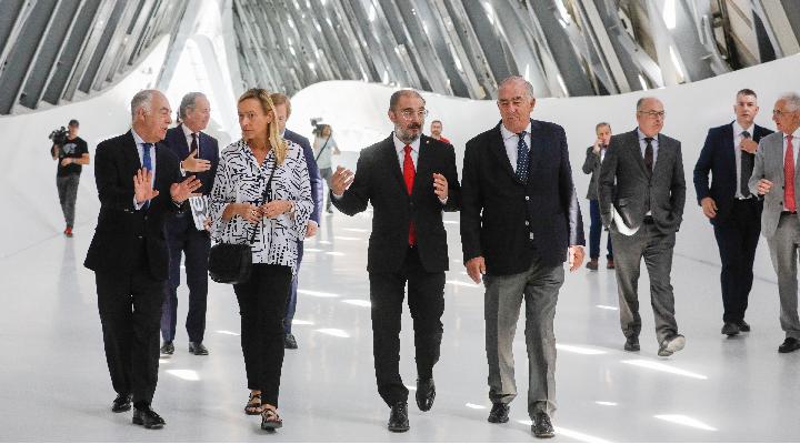 El presidente de Aragón, Javier Lambán, hizo entrega ayer del reconvertido Pabellón Puente del recinto Expo, la obra emblemática de Zaha Hadid que se constituyó en uno de los ejes de la Exposición Internacional celebrada en Zaragoza en el año 2008. De forma simbólica, esta entrega se produjo en modo de una representación del pabellón al presidente de Fundación Ibercaja, Amado Franco.