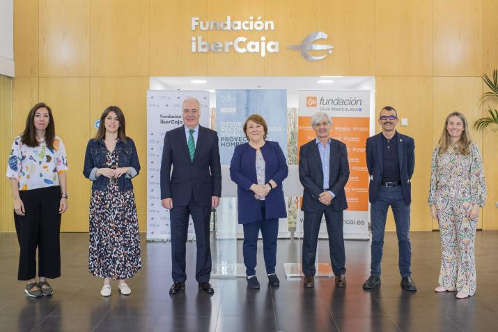 José Luis Rodrigo, director general de Fundación Ibercaja; Enrique Nogueras, director general de Fundación Caja Inmaculada, y Pilar Aznar, presidenta del Comité Ejecutivo de la Fundación Centro de Solidaridad de Zaragoza han rubricado el acuerdo.