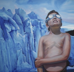 Los niños junto a estereotipos, como pinocho o la rana, o figuras de papel son símbolos de manipulación obvia, elementos fácilmente reconocibles que no necesitan ser traducidos y que mezclan realidad y ficción. En esta muestra también pueden contemplarse dos series de tablas, una protagonizada por niños que duermen – “ Rima disonante, 2”-, y simboliza mentes adormecidas, y otra – “Rima disonante,1- en la que un adulto aparece en diferentes actitudes, bocas y ojos cerrados, mensajes de una sociedad saturada. La exposición se completa con dos cuadros autorretrato del propio autor, que abren, el recorrido de la sala y en los que nuevamente puede contemplarse el mismo mensaje de ojos cerrados, y otras dos obras protagonizadas por dos figuras infantiles en diferentes entornos, un profundo bosque y un paisaje helado.