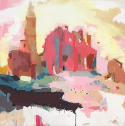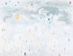 "VIDAS INFINITAS EN TIEMPOS OLVIDADOS", EXPOSICIÓN DE MARTA AGUIRRE EN LA SALA PROPUESTARTEJOVEN "Olvidaron el tema de su disputa". Acrílico, collage y lapiceros sobre tela. 200 x 200 cm