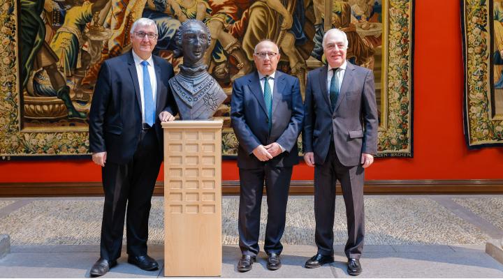 La rueda de prensa de presentación del Congreso ha contado con la participación de Honorio Romero, director de la Real Sociedad Económica Aragonesa de Amigos del País; José Luis Rodrigo, director general de Fundación Ibercaja, y Domingo Buesa, comisario de la muestra.