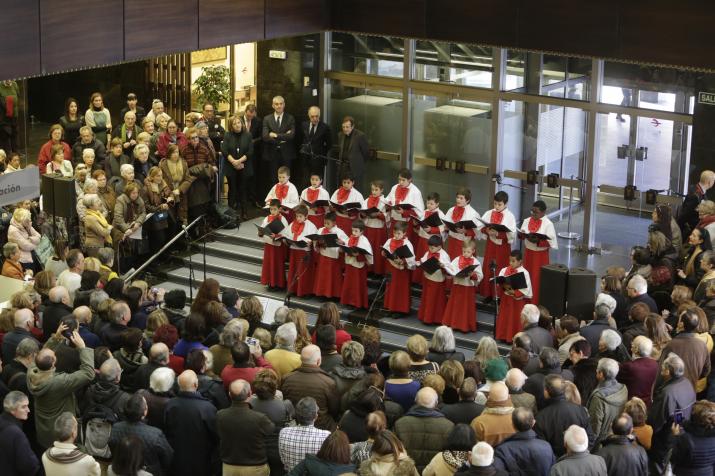 ZARAGOZA.- Los “Infanticos del Pilar” han ofrecido este mediodía su tradicional Concierto de Navidad ante el belén de la oficina principal de Ibercaja.