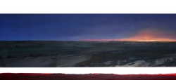 "PAISAJE ENTRE LÍNEAS", EXPOSICIÓN DE CHEMA AGUSTÍN EN IBERCAJA TORRE NUEVA "Amanecer por las cercanías de Almudévar", 2008. Técnica mixta. 65 x 146 cm