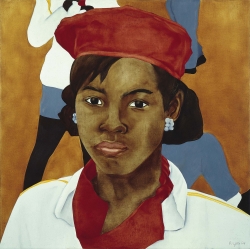 La selección de las obras de la exposición refleja su afán por la recuperación étnica, que empieza hace más de veinticinco años. Esta búsqueda se centra especialmente en los descendientes de hombres y mujeres que fueron arrancados de sus familias y sus tierras, por el brutal comercio de esclavos desde África hacia América.