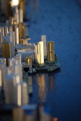Su obra está compuesta por ciudades fabricadas a base de materiales informáticos y componentes electrónicos reciclados tratados con pinturas e imprimaciones para dar un mayor realismo a las esculturas que fabrica. El artista completa sus construcciones con fondos que son fotografías de la naturaleza. Para estas imágenes suele elegir los momentos del día con más intensidad de la luz como el amanecer, mediodía o atardecer. Con estas composiciones Sebastián Román crea espacios nuevos en los que ser recrea, obteniendo infinitos puntos de vista.