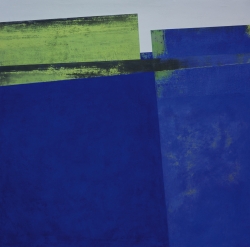 EXPOSICIÓN SILVIA LERÍN " A través de los azules", 2006. Técnica mixta sobre tela. 135 x135 cm